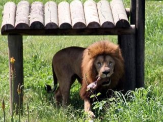 Aslanlar, kafeslerinden salınınca etleri koklayarak bulmak için harekete geçti. Aslanlar, 3 metrelik ağaçlara büyük bir çeviklikle zıplayıp tek hamlede etleri aldı.