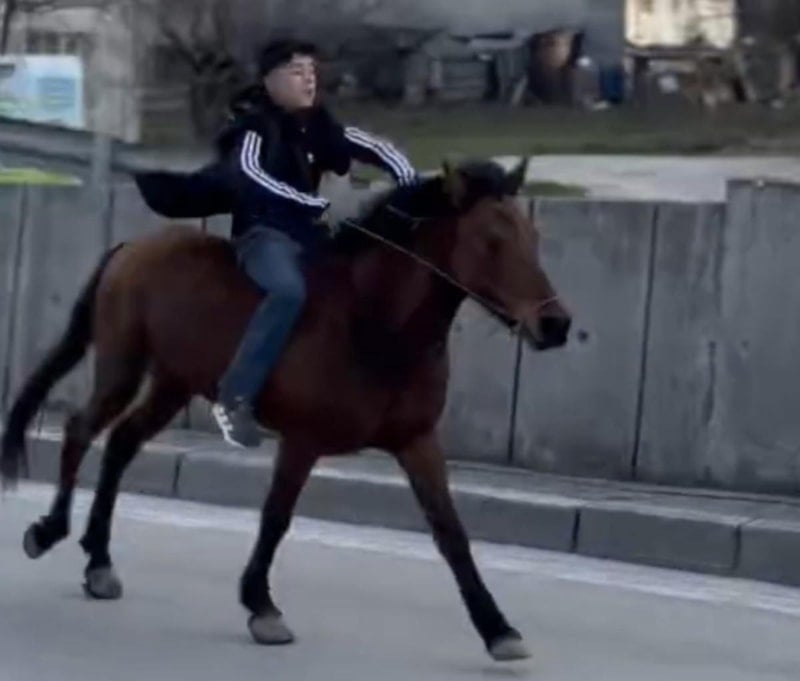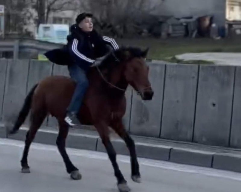 İlçede 15-16 yaşlarındaki bir genç, bindiği atıyla trafiğe çıktı.