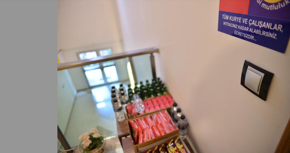 Aile, ikram masasının önünde bulunduğu duvara astığı notta ise "Tüm kuryeler ve çalışanlar, ihtiyacınız kadar alabilirsiniz. Ücretsizdir." yazısına yer verdi.
