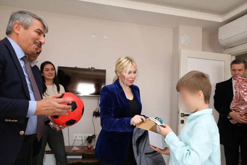 Evdeki diğer çocuklarla da sohbet eden Özkan, kendilerini üniversitede ağırlamak istediklerini belirtti.