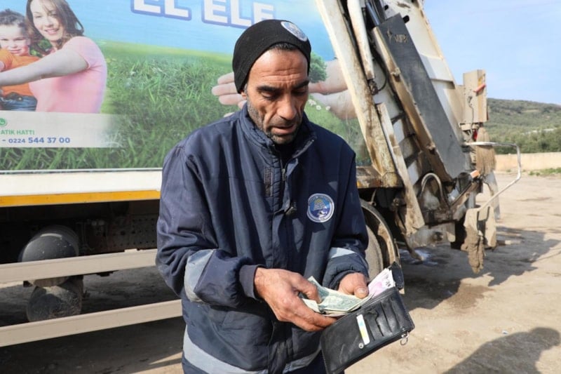 Mudanya Belediyesi Temizlik İşleri Müdürlüğü’nde görevli Mehmet Güngör, çöp konteyneri yanında bulduğu para dolu cüzdanı sahibine teslim etti.