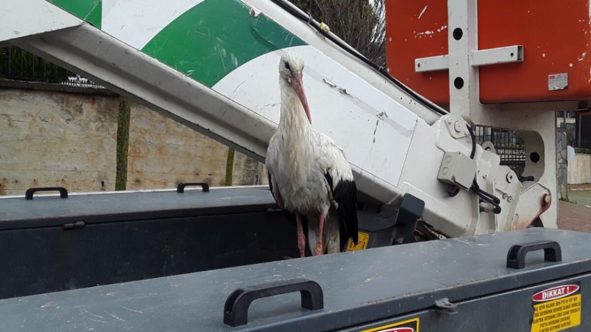 Sabah saatlerinde elektrik arızası ihbarına giden UEDAŞ (Uludağ Elektrik Dağıtım A.Ş.) ekipleri, dönüş yolunda soğuktan etkilenen bir leyleğe rastladı.
