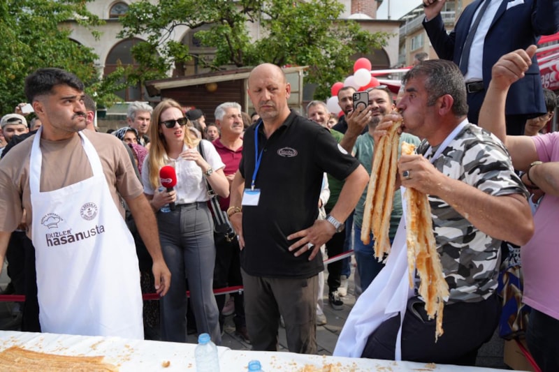 Bursa'da 14'üncüsü düzenlenen Geleneksel Börek Yeme Yarışmasında yarışmacılar 5 dakikada 16 metre börek yemek için mücadele etti. Hassas terazi ile tartılan böreklerde birinciyi 40 gramlık fark belirledi. 11 metre börek yiyen Ali Kılıç, geriye 584 gram en az böreği bırakarak yarışmanın birincisi oldu.