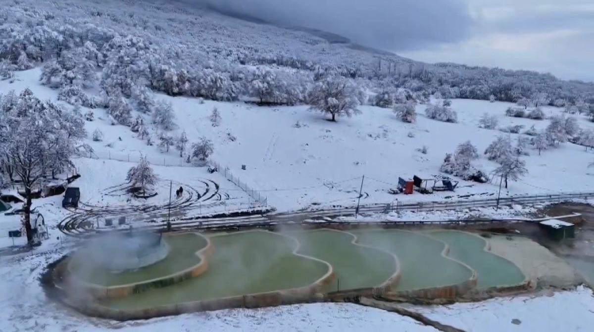 Dağların arasındaki sıcak su kaynağı, soğuk kış günlerinde bile termal suyun keyfini çıkarmak isteyenleri ağırlıyor.