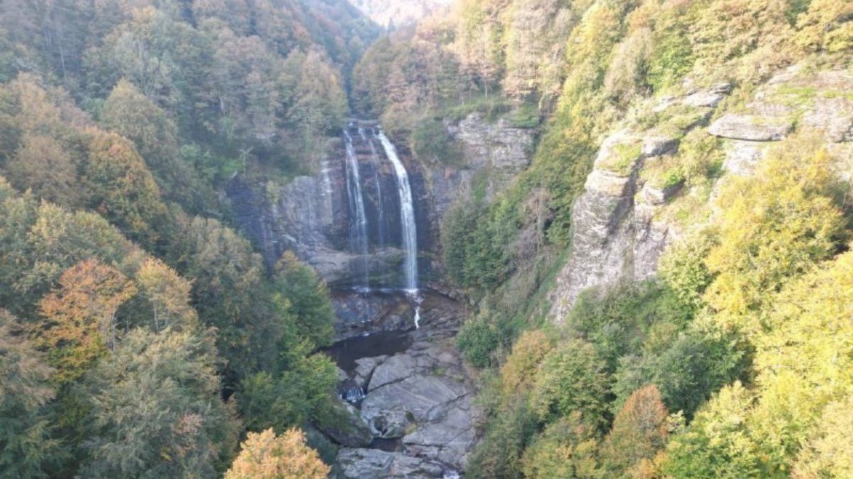 Sonbahar'ın gelişiyle renk cümbüşüne dönen şelale ziyaretçilerini büyülüyor.