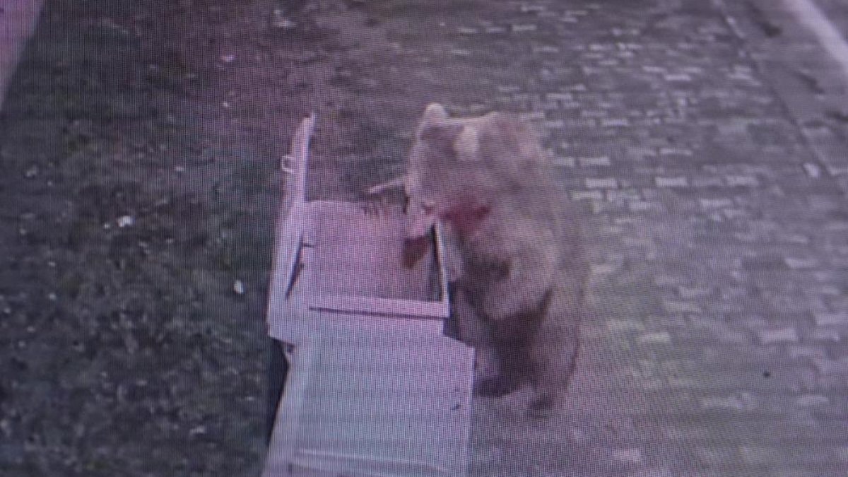 Demir çite zarar veren ağacı yol olarak kullanan ayı, atlayarak kaçmayı başardı.