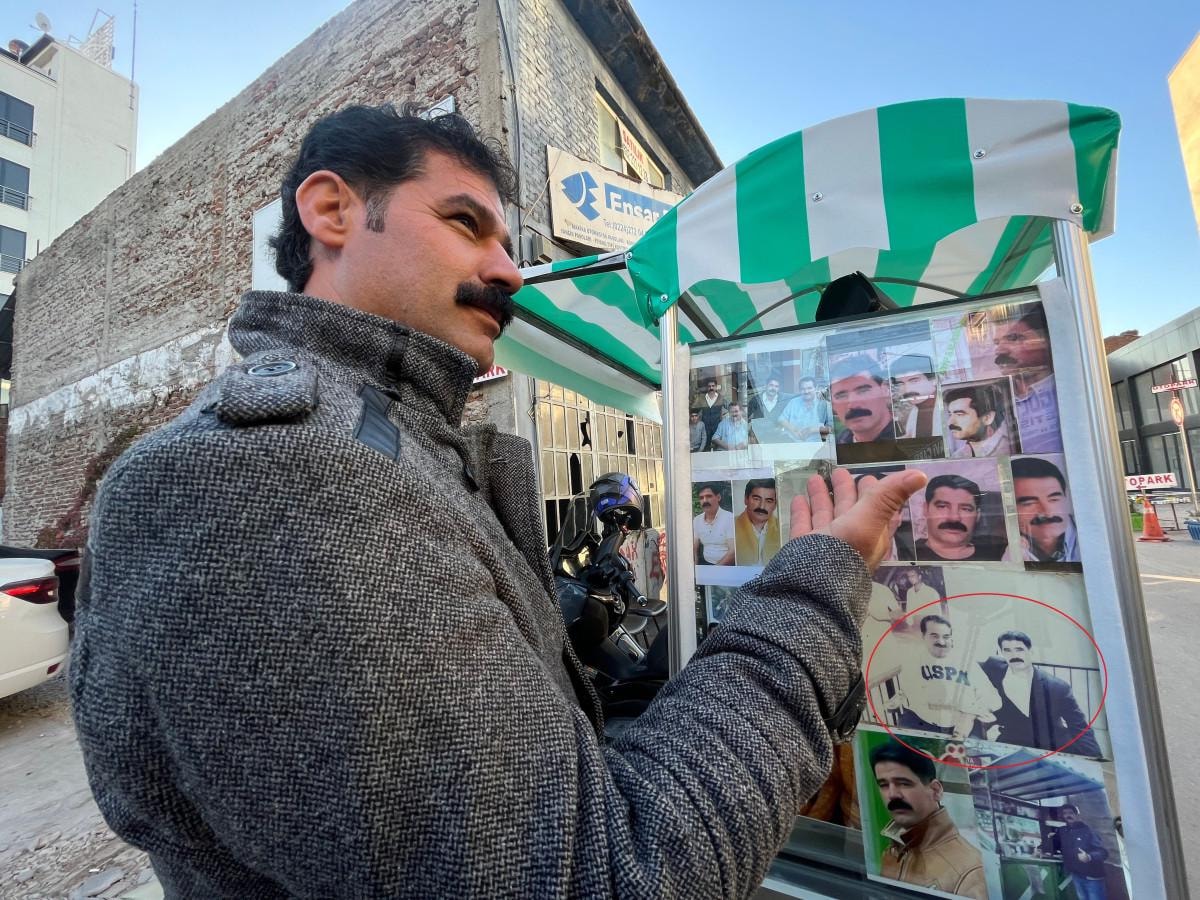 Öner, daha önce İzmir'de bir araya geldiği İbrahim Tatlıses ile çektirdiği fotoğrafını da tezgahında sergiliyor.