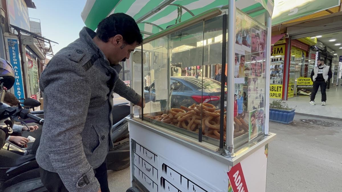 30 yıl önce çocukluğunun geçtiği Adana'dan Bursa’ya gelen Mehmet Öner, geçimini her sabah seyyar tezgahına dizdiği halka tatlıları satarak sağlıyor.