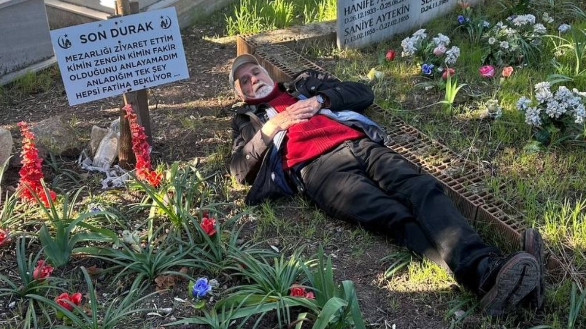 Elleriyle inşa ettiği mezarının üzerine çiçekler eken Aytekin, her gün sulamaya gittiği mezarının üzerine uzanıp ölümü hatırlıyor.