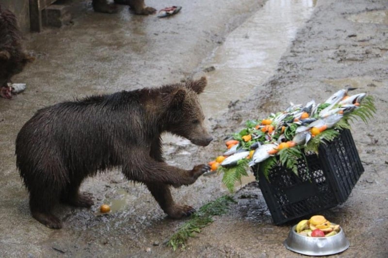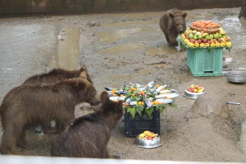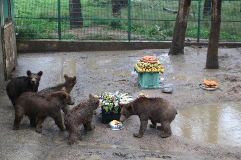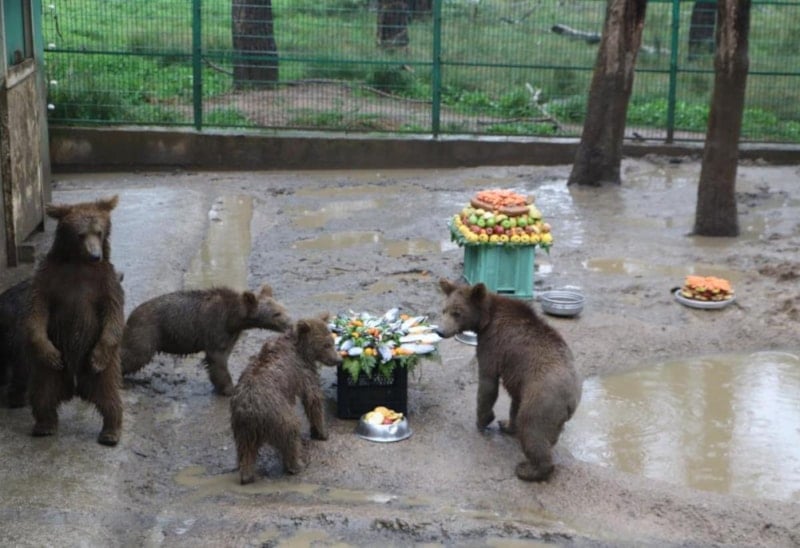 Buradaki ayılarımız doğadaki yaşamlarını sürdüremeyecek duruma geldikleri için burada kalıyorlar. Barınağımız Türkiye'de tek bugünde yavru ayılarımız için bir doğum günü sürprizi yaptık. 3 tane pasta hazırladık yavru ayılarımız için. Arkadaşlarımız pastaları yavru ayılara servis etti. Artık onlarda afiyetle yiyecekler" dedi.