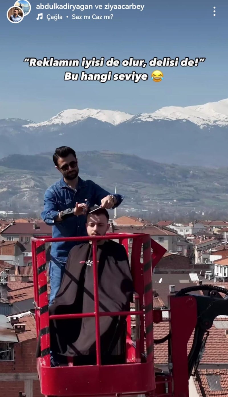 Amacının dikkat çekmek olduğunu söyleyen Ziya Acar, "Yerden 26 metre yüksekliğe çıkmak kolay olmadı. İlk başta saçma geliyordu, daha sonrasında yukarıda daha farklı bir hava olduğunu hissettik. Farklı bakış açısıyla, daha güzel görseller çıkarılabilirdi ama en güzelini çıkardık. 26 metre yükseklikte tıraş keyfi herkese nasip olmaz. Tavsiye ederiz." diye konuştu.