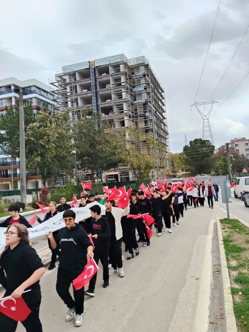 Ardından öğrenci ve öğretmenler Nilüfer İlçe Emniyet Müdürlüğü ekiplerinin eşliğinde okul çevresinde yürüyüş düzenledi.