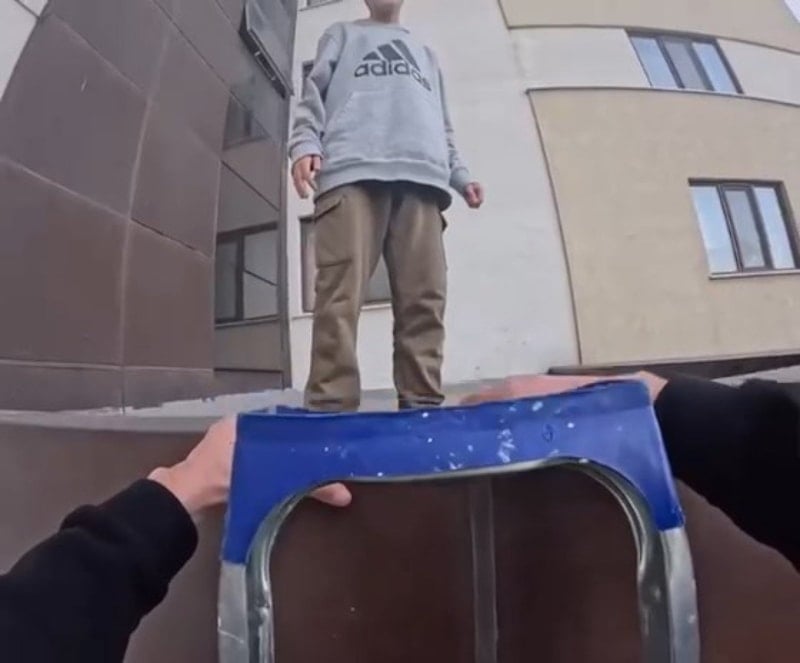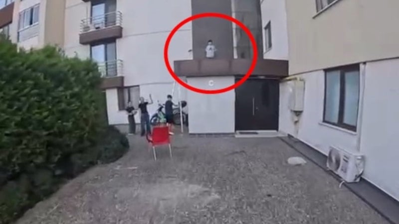 Nilüfer ilçesinde bir kurye, sipariş getirdiği binanın girişindeki damda mahsur kalan çocuğu siparişini teslim ettikten sonra merdivenle kurtardı. O anlar, kuryenin kask kamerasına yansıdı.