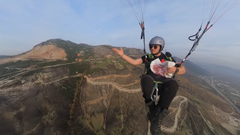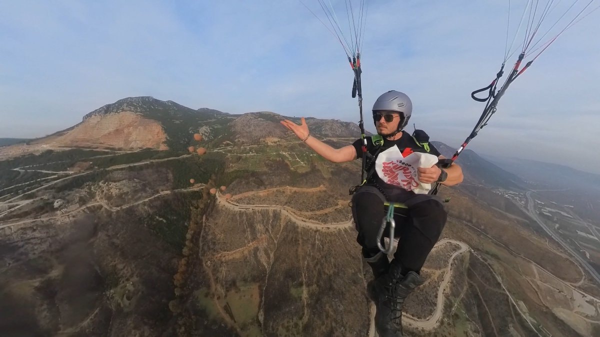 Bursa'da öğrenciler tarafından hazırlanan tohum topları, orman yangınlarında zarar gören alanlara yamaç paraşütçüleri tarafından bırakıldı.