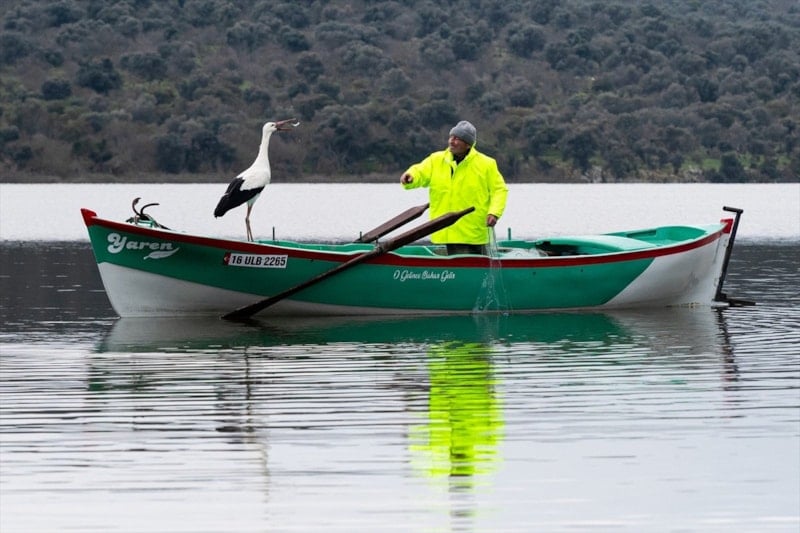 Bursa'nın Karacabey ilçesine bağlı Eskikaraağaç Mahallesi’nde yaşayan balıkçı Adem Yılmaz ile Yaren Leylek arasındaki dostluk, dillerden düşmüyor.