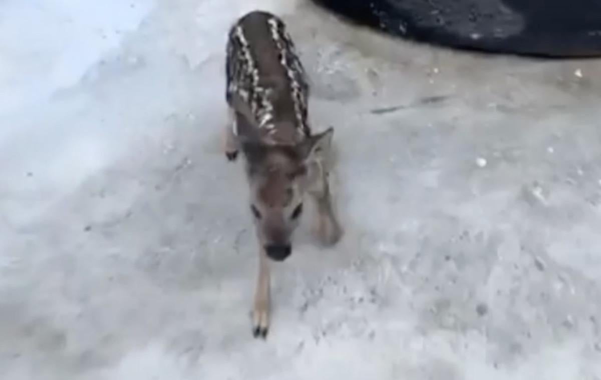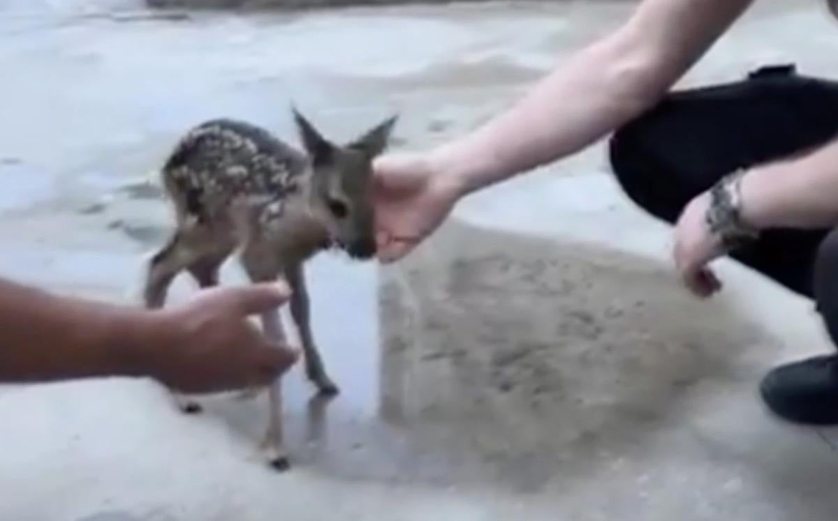 Yürümekte zorlanan yavru karacanın aç olduğunu düşünen polisler, süt alarak besledi.