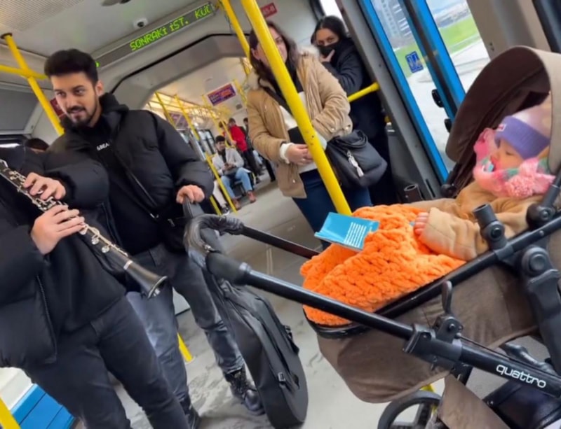 Metroda ağlamayan başlayan bebeği annesi sakinleştiremeyince yardımına klarnet çalan müzisyen yetişti. Müzisyenin klarnetle ninni çaldığı o anlar kamera kaydına alındı.