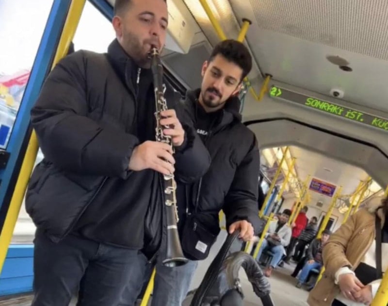 O sırada annenin imdadına, metroda klarnet çalıp yolculuk eden müzisyenler yetişti.