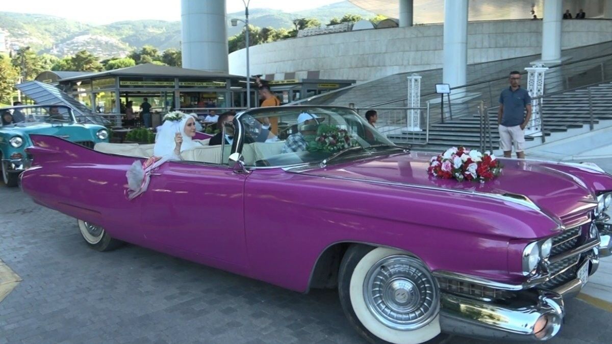 Amerika’dan getirilen 1959 model Cadillac, 1959 Plymouth ve 1955 model Chevrolet otomobiller, dünyaevine giren Özay ve Sümeyra Balkan çifti tarafından kiralandı.