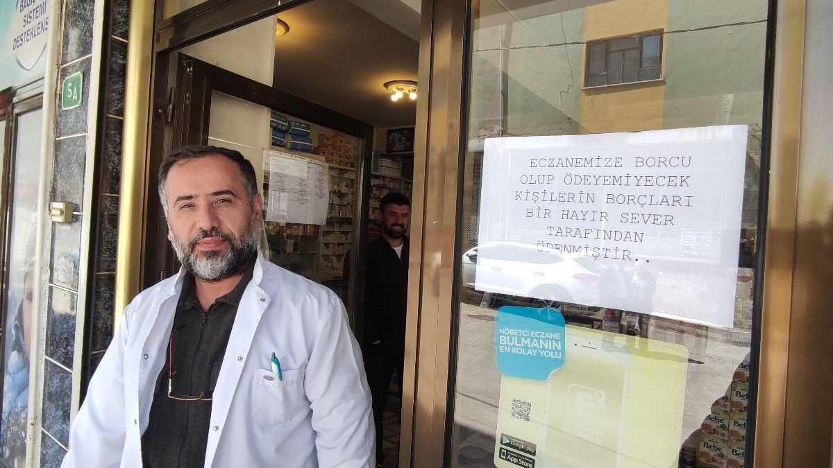 İHA'nın haberine göre, eczacılar ise işyerlerinin camlarına "Buradaki veresiye borçlar hayırsever bir kişi tarafından ödenmiştir" notunu astı.