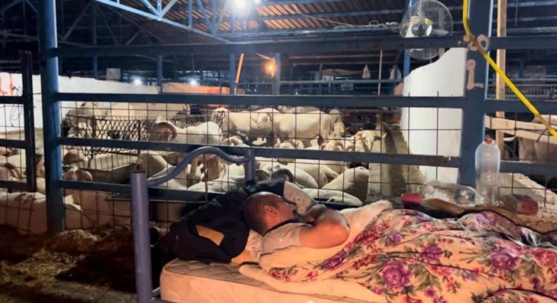 Hayvanları için yaptıkları bölmelerde kurbanlıklarla birlikte uyuyan celepler, ahırlarda yemek yiyor ve dinleniyor. Ahırlarda battaniyeye sarılıp yatan satıcılar, piknik tüplerinde yemek ve çaylarını yaparak karınlarını doyuruyor.