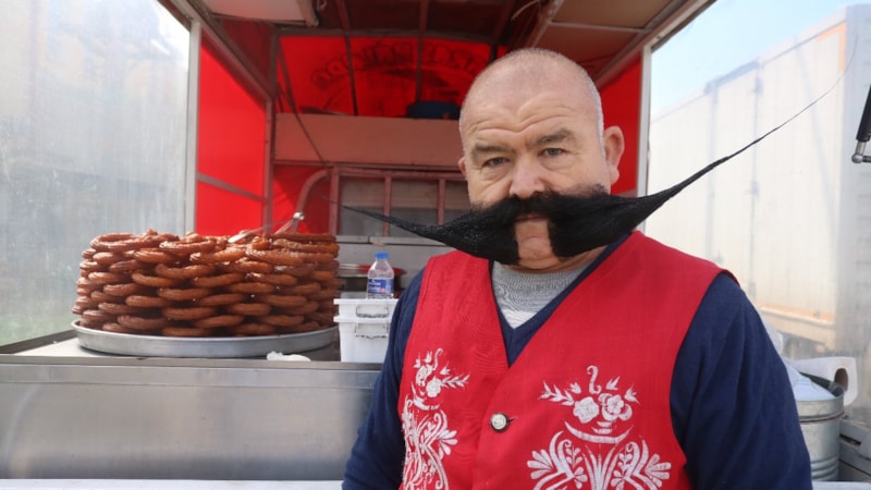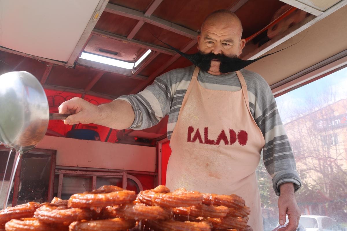 Bursa’da 40 yıldır tatlıcılık yaparak geçimini sağlayan 55 yaşındaki ‘Pala’ lakaplı Ramazan Demir, dedesine özenip bıyık bırakmaya başladı.