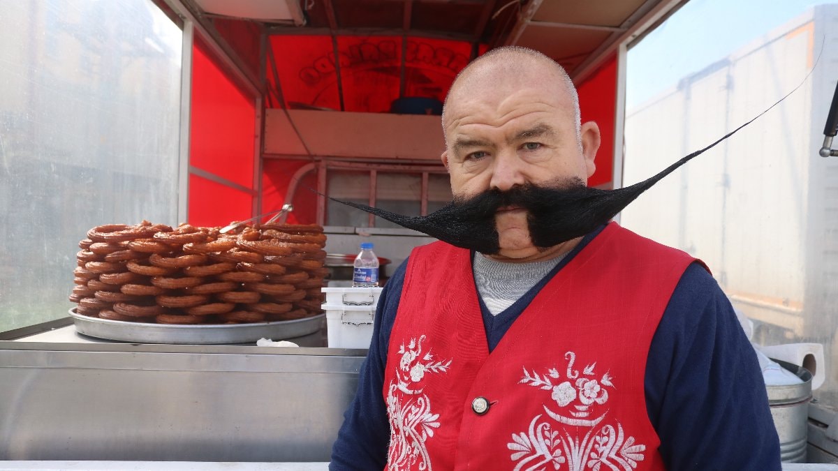 25 yıldır uzattığı bıyığı 80 santimetreye ulaşan Demir, 4 yıl önce kısalttığı bıyıklarını pişman olup tekrar uzattığını söyledi.