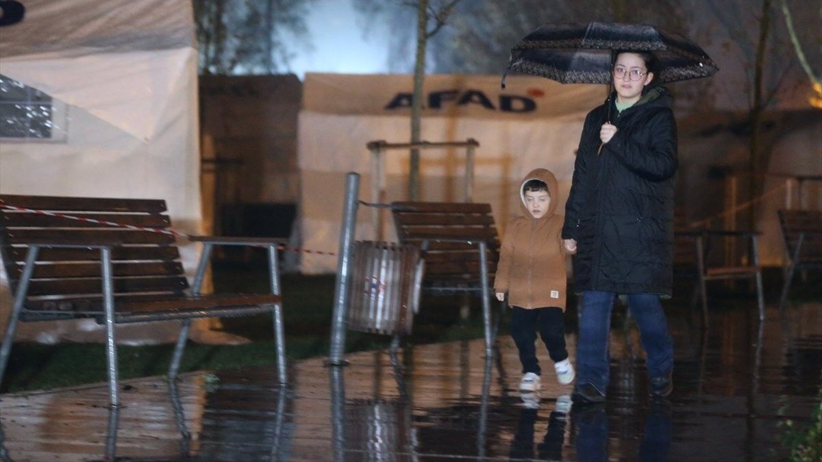 Meteoroloji Genel Müdürlüğü, deprem bölgesi için yağış uyarısında bulunmuştu. Dün akşam saatlerinde başlayan şiddetli rüzgar yerini sağanak yağmura bıraktı.