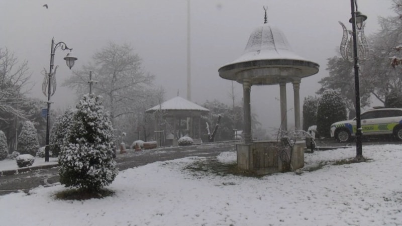 Kar yağışı, Çamlıca Tepesi’nde drone ile görüntülendi.