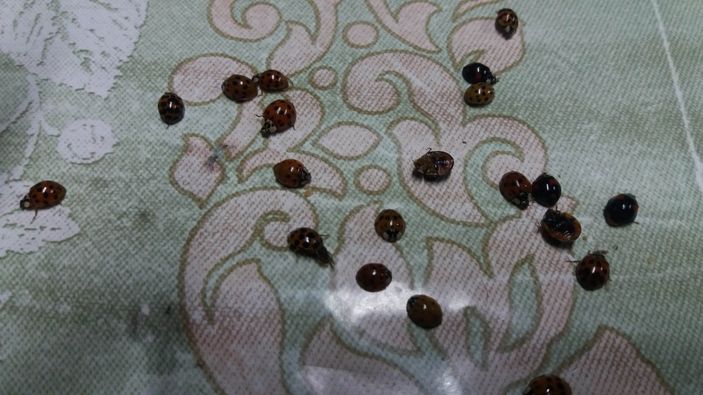 Evlerin açık camlarından odalara dolan yüzlerce uğur böceğinin, bölgede bulunan arı kovanlarına da zarar verdiğini ifade eden bölge halkı, mahallelerde araştırma yapılmasını istiyor.