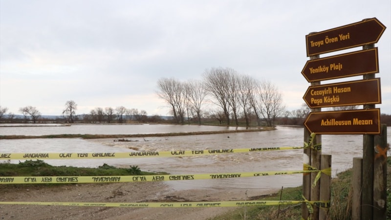 Valilikten yapılan açıklamada, Karamenderes Çayı'ndaki su seviyesinin yükselmesi nedeniyle Kalafat, Tevfikiye ve Kumkale güzergahında taşkın meydana geldiği bildirildi.