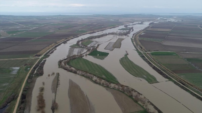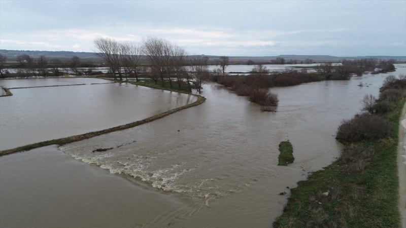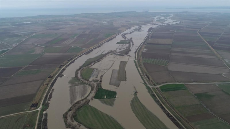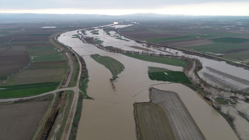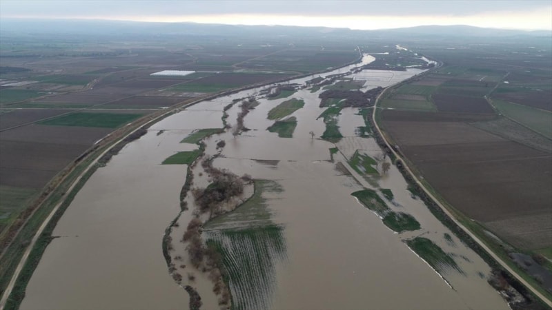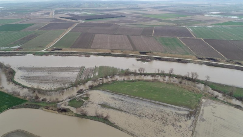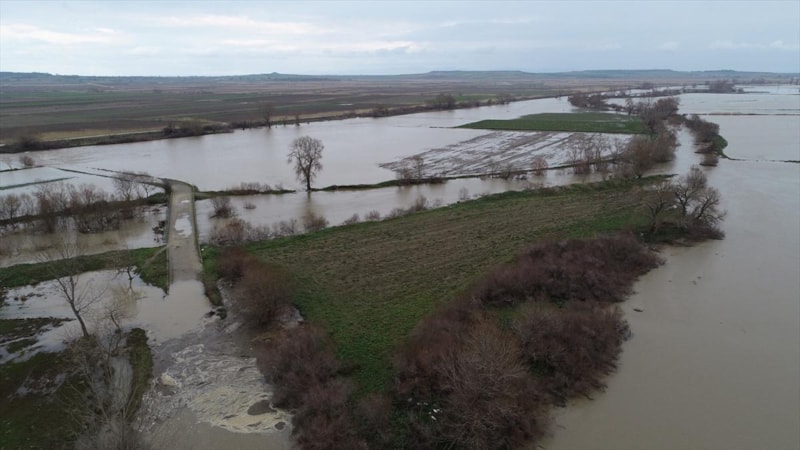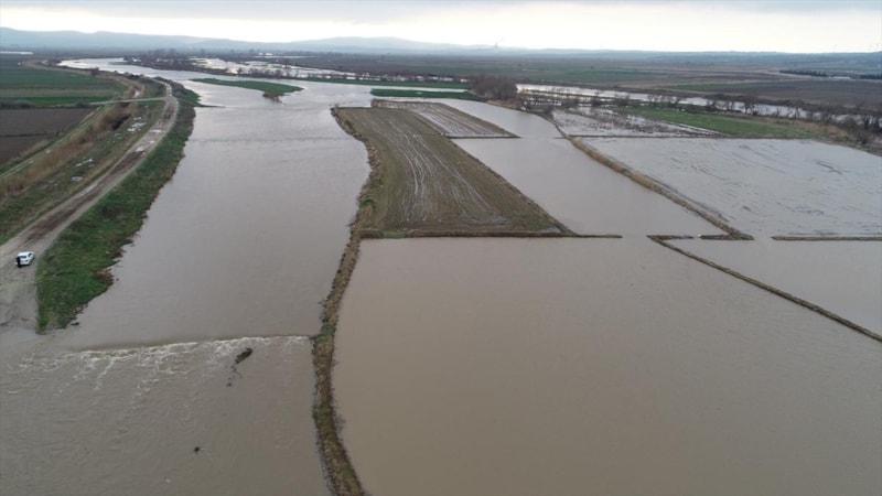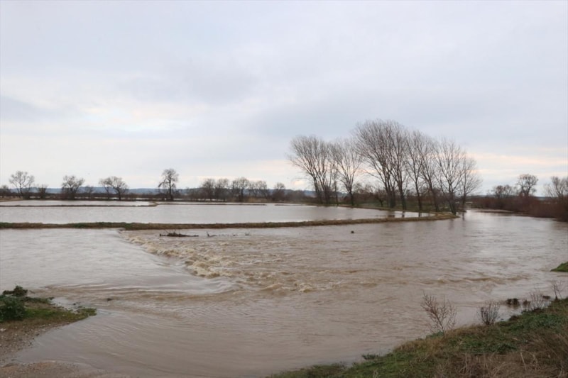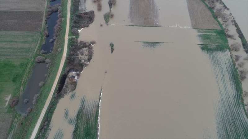 Çanakkale'de Karamenderes Çayı, debisi yükseldiği için taştı. Yaşanan taşkında bölgedeki bazı tarlalar su altında kaldı.
