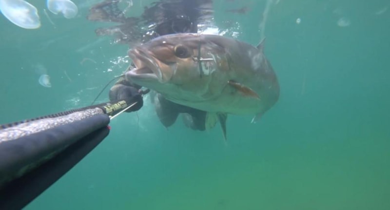 Balığı zıpkınla avlayan Doğan, bu anları da su altı kamerasıyla saniye saniye kaydetti.