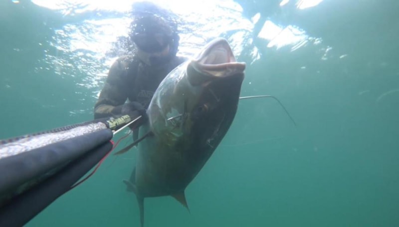 Dalış elbiseleri, gözlük, şnorkel ve zıpkınıyla tüpsüz olarak 25 metre derinliğe dalan Doğan, daldıktan bir süre sonra zıpkınıyla bir akya sürüsüyle karşılaştı.