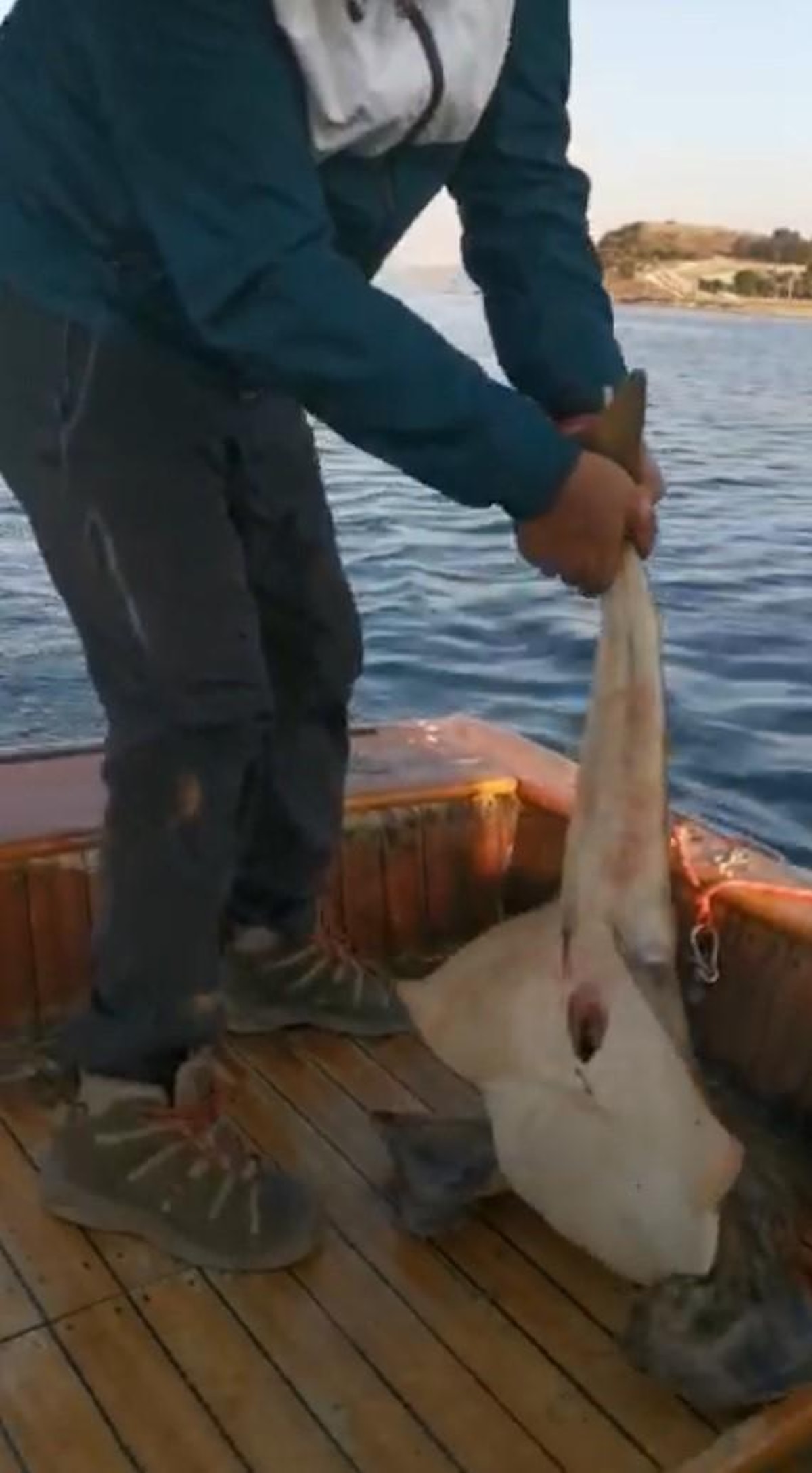 Balığı tekneye alan balıkçılar gördüklerine şaşırdılar.