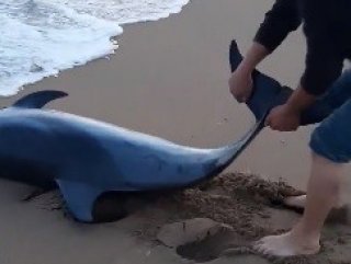 Çanakkaleli, kumsala vuran yunusu kurtardı