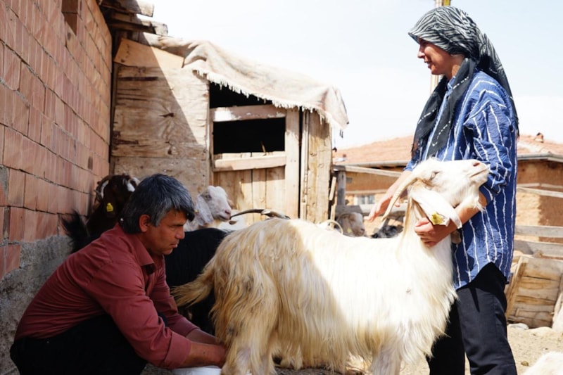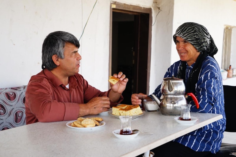 Yaşadıkları köyde hayvancılıkla uğraşan çift, birlikte tüm işleri yaparak yaşamlarını sürdürüyor. Köyde tarlada çalışan çift, birlikte koyunlarını sağıyor, dağda hayvanlarını otlatıyor.