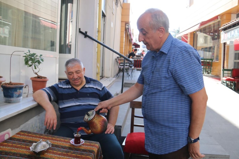 Sabah saat 07.00'de dükkânı açıyorum, 07.30'da çayımız hazır oluyor. İlerleyen yaş gurubundaki arkadaşlarımız geliyor hem kahvaltılarını yapıyorlar hem de çaylarını içiyorlar. Hararetlerini giderdiğini iddia edip öğle saatlerinde çayı daha da fazla içiyorlar. İlerleyen yaş gurubundaki arkadaşlarımız sıcakta çay harareti bastırır deyip bol bol çay içiyorlar ancak gençlerimizse tam tersi soğuk içeceklerle serinlemeye çalışıyorlar. Bu arkadaşlarımız sabahtan akşama kadar çay içerek ferahladıklarını söylüyorlar, ben de onlara katılıyorum. Bence de çay harareti alıyor.