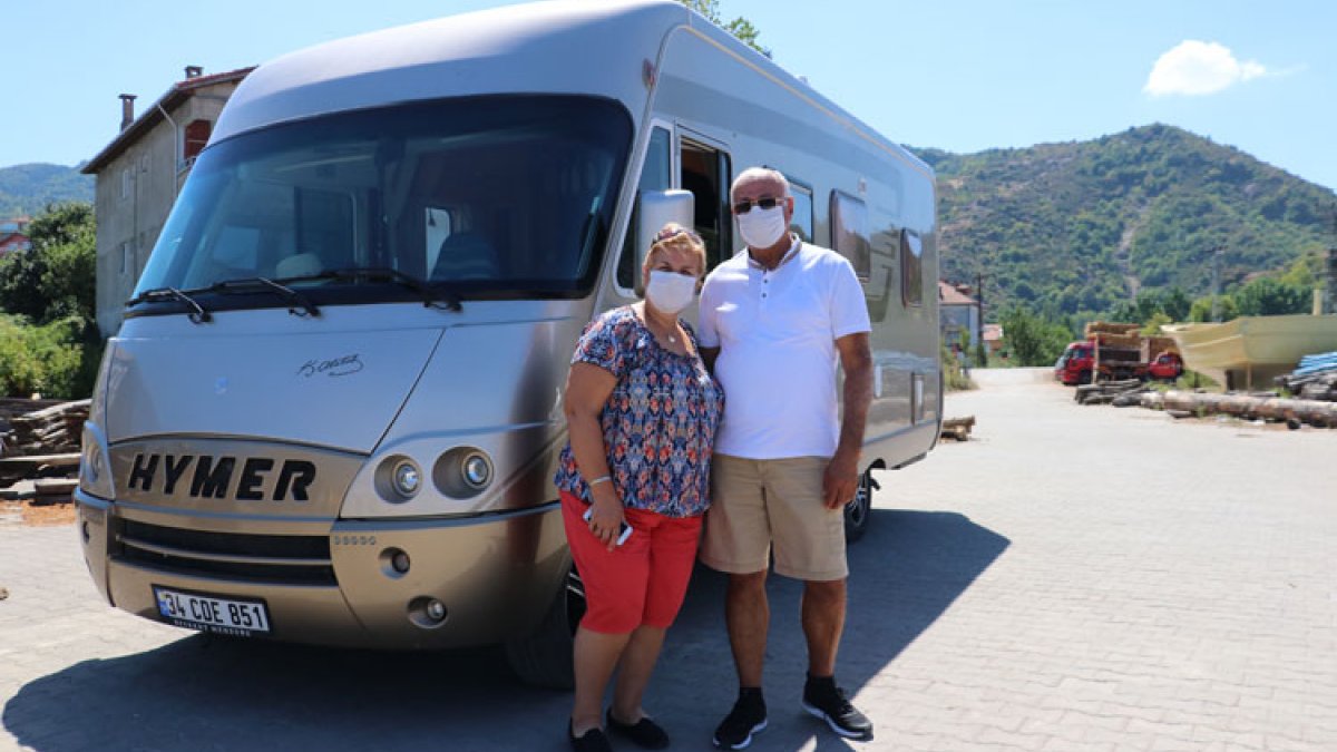 Hatice Meral Çeliköz ise karavanla gezmekten çok mutlu olduğunu vurgulayarak, "Ben evden daha çok karavanı seviyorum. Çok güzel yerler gördük, çok mutluyum. El işi yaparak gidiyorum. Gördüğüm çocuklara ve hamile kadınlara ördüğüm yelekleri hediye ediyorum." dedi.