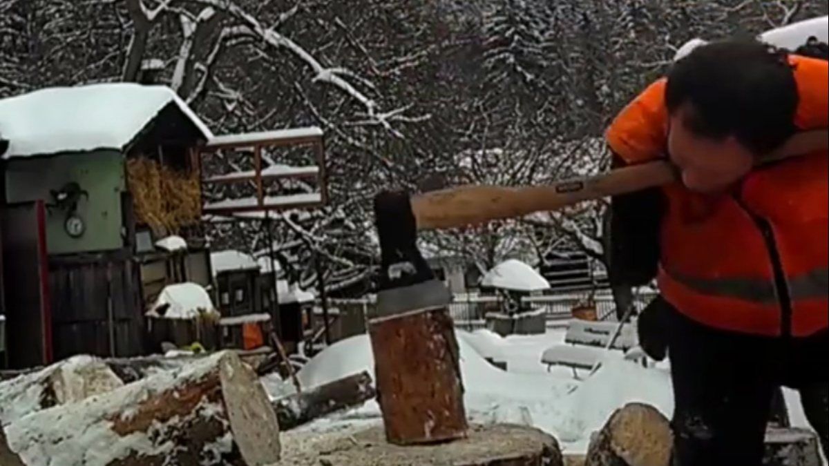 Söz konusu kişi, birkaç denemesinde odunları kırmayı başardı.