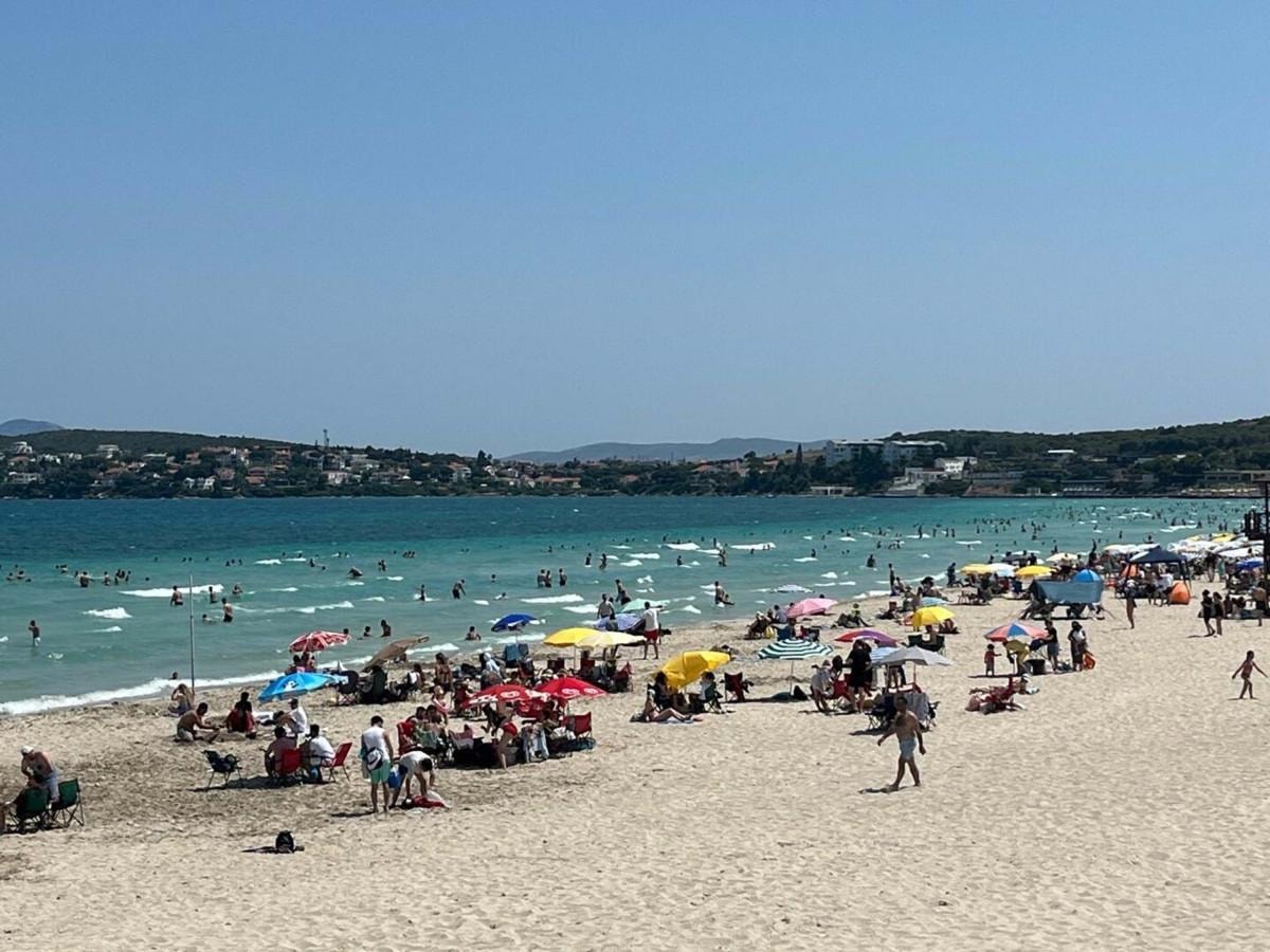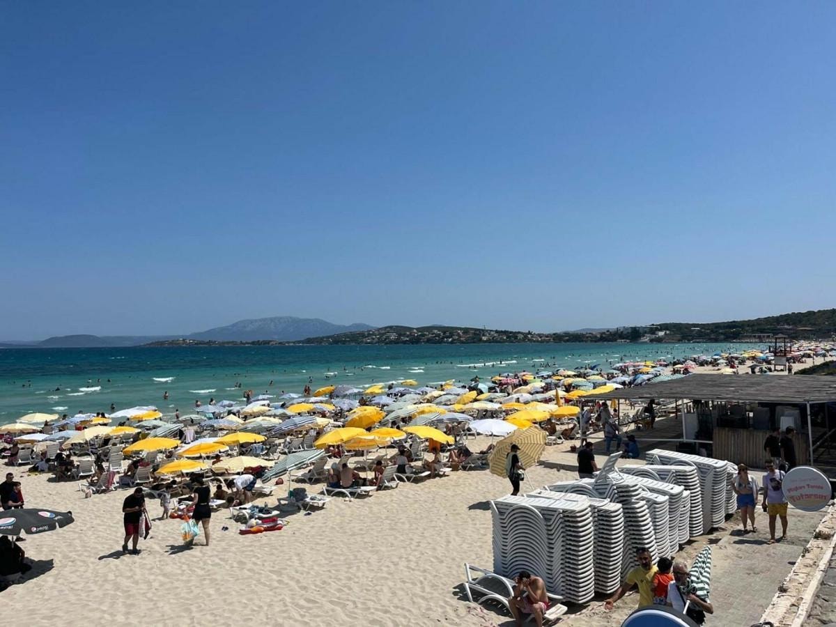 Hava sıcaklığının öğle saatlerinde 30 derecelere kadar yükselmesiyle denizin keyfini çıkarmak isteyenler de ünlü Ilıca Plajı'nın yolunu tuttu.
