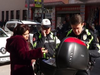 Hatalı park nedeniyle ceza yazılan sürücü, babasıyla telefonda konuşup polis ekiplerine tehditler savurdu. Kadın sürücü, aracına binerken polise "Seninle çok pis uğraşacağım" dedi.