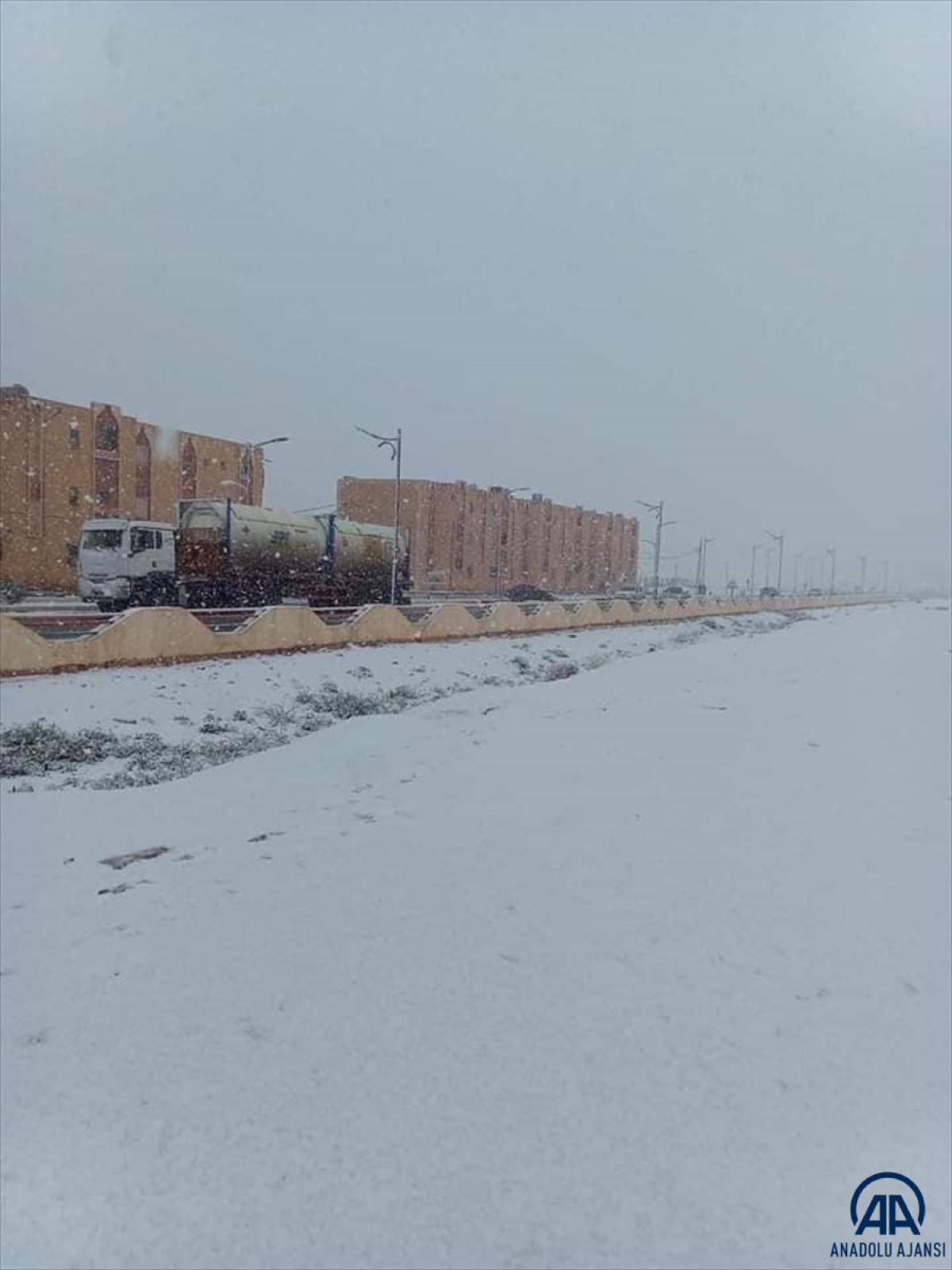 Yoğun kar yağışının etkili olduğu bölgede bazı çöl alanları ve kum tepelerinin beyaza büründüğü görüldü.