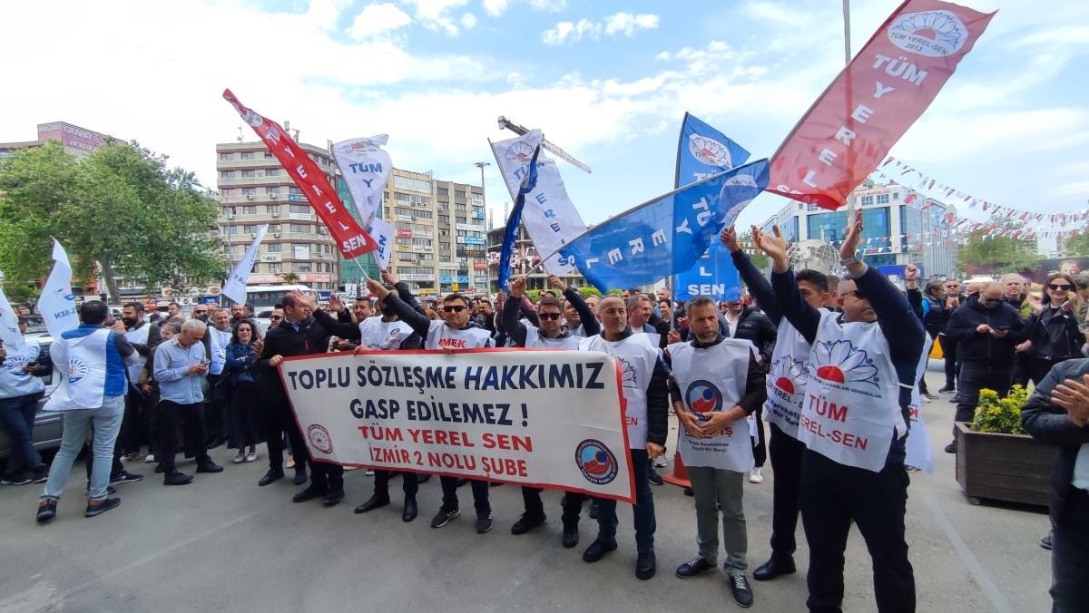 Yerel seçimler sonrası başta İzmir olmak üzere toplu sözleşmelerimizi yaşatma adına mücadelemizi hep birlikte verdik. İmzalanan Toplu Sözleşmelerde küçük bir nefes aldık derken şimdi de elde ettiğimiz kazanımlar takside bağlanmaya çalışılmaktadır. Daha önce de bu meydanlarda haykırdığımız gibi yine haykırıyor yine söylüyoruz.