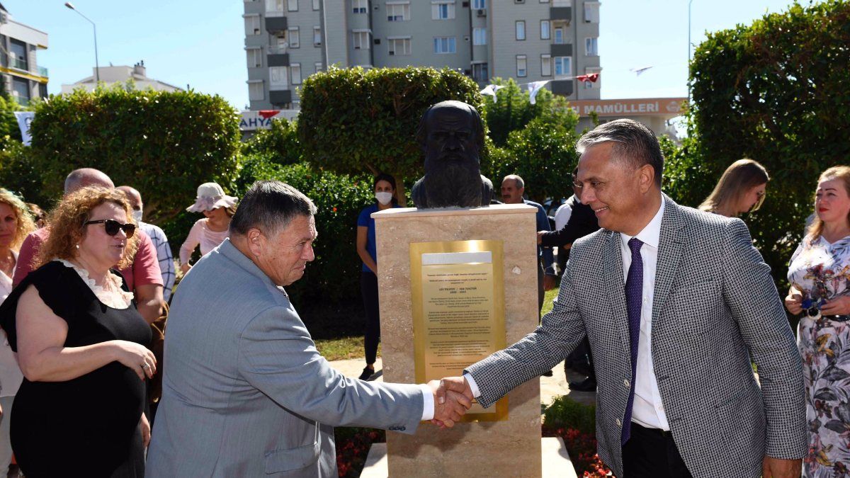 CHP'li Muratpaşa Belediyesi hediye edilen Tolstoy büstünü açtı VİDEO