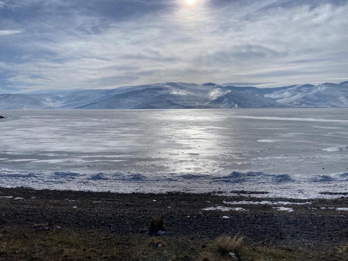 Kar yağışının ardından, hava sıcaklığının sıfırın altında 10 dereceye kadar düşmesi nedeniyle Çıldır Gölü'nün yüzeyi buz tutmaya başladı.