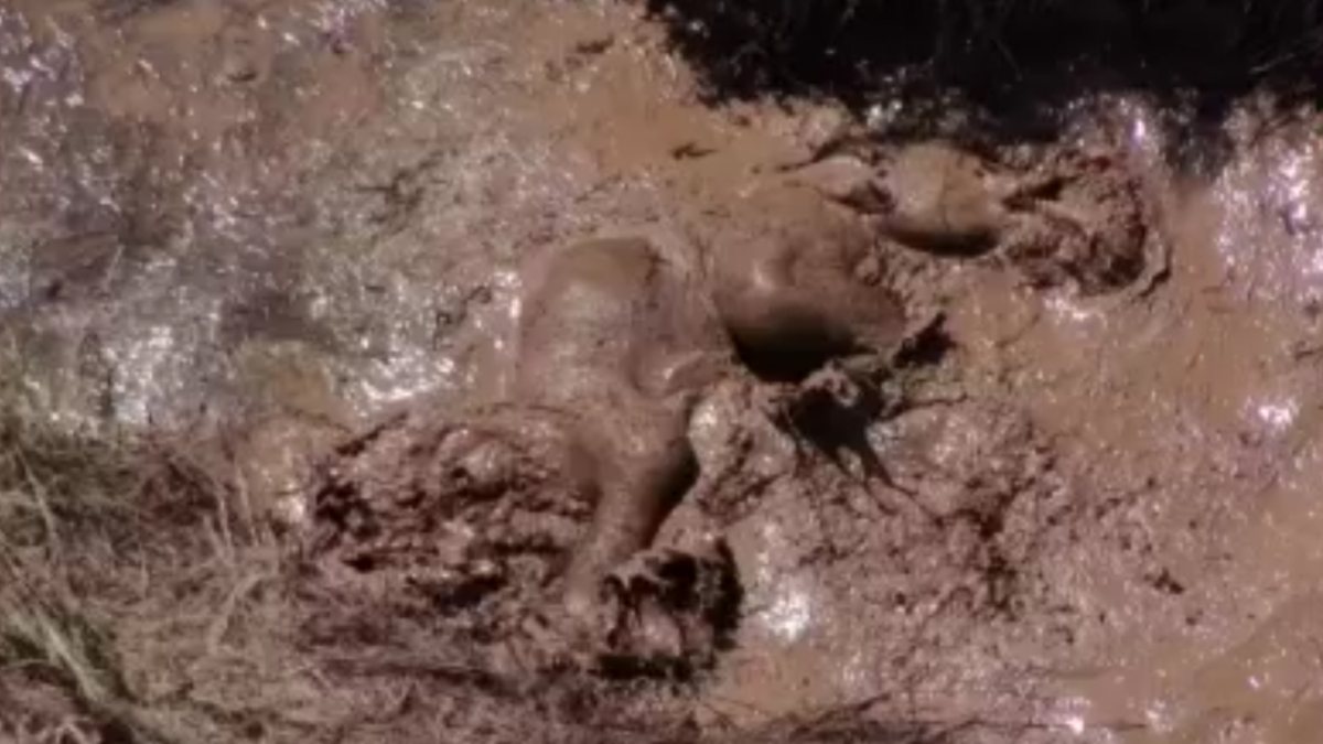 Çin'de fil yavrusunun 'çamur banyosu' keyfi gülümsetti VİDEO