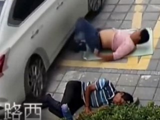 Liang isminde bir inşaat işçisi, öğlen yemeğinden sonra sokakta biraz kestirmek istedi. Yere mat koyan işçi, matın üzerinde uyuyakaldı. O sırada sokakta bulunan otoparktan beyaz bir arabanın çıktığı görüldü.