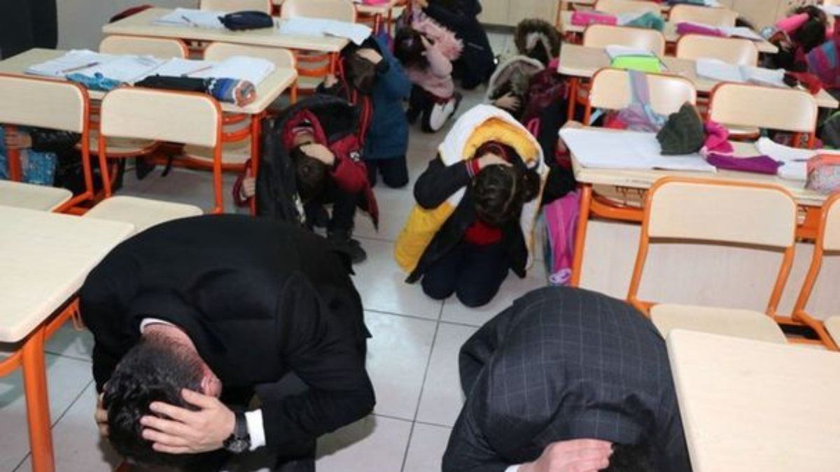 AFAD Tatbikat bilgilendirmesidir. Şu anda tüm ülkede Deprem Anı, Çök-Kapan-Tutun Tatbikatı yapılmaktadır.