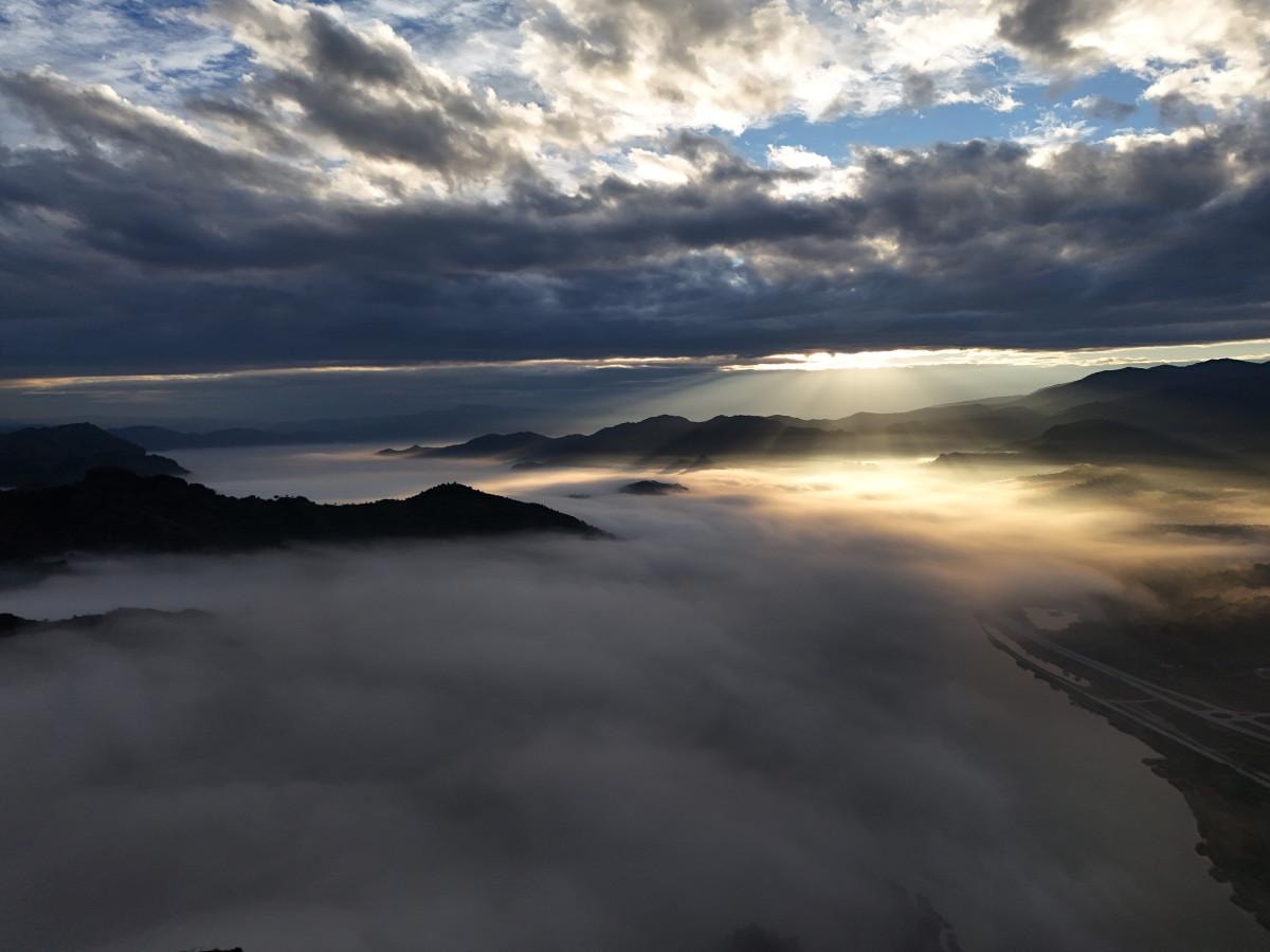 Osmancık ilçesinde dağları ve Kızılırmak nehrini kaplayan sis, gün doğumu ile birlikte kartpostallık görüntüler oluşturdu. Mest eden sis manzarası drone ile havadan görüntülendi.